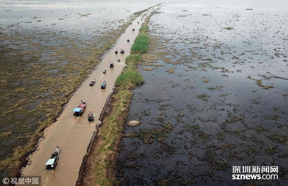 6月20日,鄱陽湖江西省鄱陽縣水域,漁船下湖捕撈作業(yè)。為期3個月的中國最大淡水湖鄱陽湖春季禁漁期于當日12時結束。當日,第二屆鄱陽湖國家濕地公園開漁節(jié)在此間舉行,吸引各地游客慕名前來。中新社記者 姜濤 攝