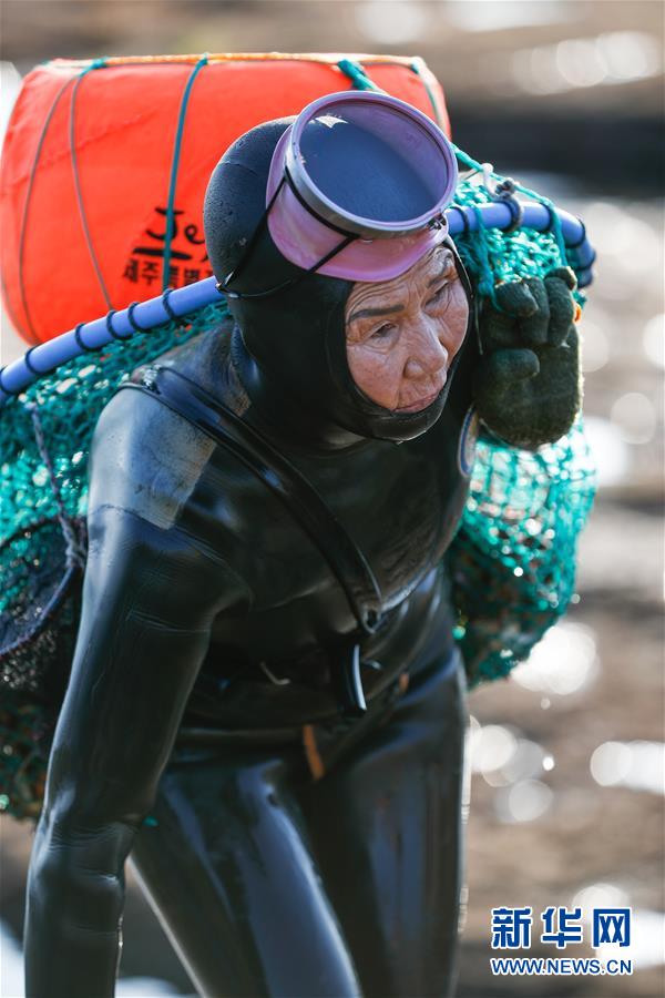 11月23日,海女們在韓國濟州島的一處海岸附近結束一天的作業(yè)準備回家。新華社記者王婧嬙攝