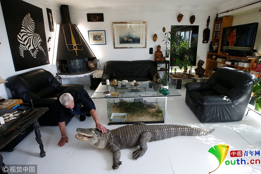 中國(guó)青年網(wǎng)北京9月21日電 當(dāng)?shù)貢r(shí)間2018年9月19日,法國(guó)67歲的法國(guó)男子Philippe Gillet與400多只爬行動(dòng)物生活在一起,有鱷魚、蜥蜴、眼鏡蛇等等。