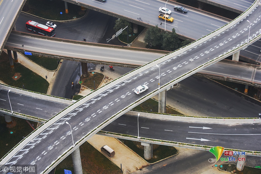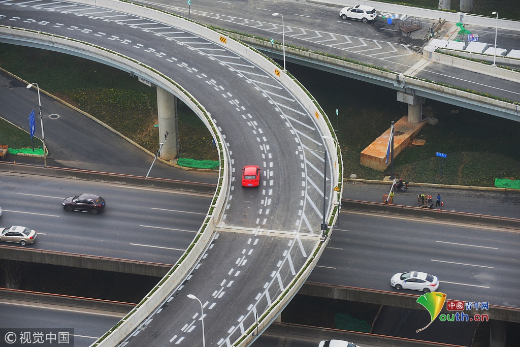 2018年11月23日,成都,俯瞰整個嬌子立交的全貌:12條匝道已經(jīng)完工,道路標線、路面路況、指示牌都是全新的,不時有車輛在三環(huán)路和成龍路之間轉換。