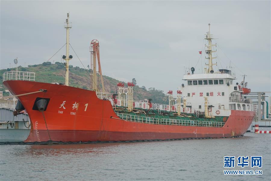 這是??吭跂|港石化碼頭正在接受調查的涉事船只“天桐1號”(11月6日攝)。新華社記者 宋為偉 攝