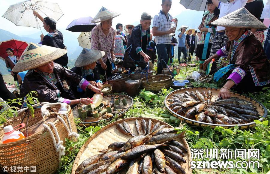 2018年11月19日,侗族同胞在參加貴州省從江縣慶云鎮(zhèn)“凍魚(yú)節(jié)”祭薩儀式。 據(jù)了解,“凍魚(yú)節(jié)”是當(dāng)?shù)亍笆稀倍弊逋赜械募漓雮鹘y(tǒng)節(jié)日,定在每年農(nóng)歷的10月12日,是人們紀(jì)念祖先遷徙而舉辦的規(guī)模盛大的節(jié)日,至今已有500多年的歷史。節(jié)日期間,主人邀請(qǐng)親友聚餐、參與慶祝活動(dòng),共享豐收喜悅。