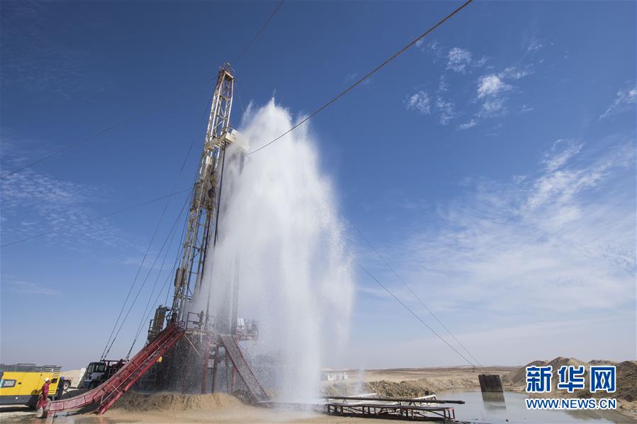 11月21日,在埃及明亞省,地下水從水管里噴涌而出。 2017年,中國中曼石油公司與阿聯(lián)酋海灣集團(tuán)簽訂合同,為該集團(tuán)在埃及沙漠中的大型農(nóng)業(yè)項(xiàng)目鉆探300口水井。根據(jù)合同,中曼石油將先期完成30口井的試鉆探,剩余水井將以每月7口的速度交付。目前有超過200名工人在鉆井現(xiàn)場(chǎng)作業(yè),大部分是埃及本地人。 新華社記者李碧念攝