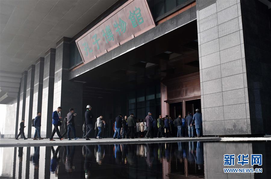11月26日,參觀者在孔子博物館內(nèi)參觀。 當(dāng)日,耗時(shí)5年建成的孔子博物館在孔子故里山東曲阜開館試運(yùn)行,首批2000多件文物搬出孔府文物檔案館,入住孔子博物館,今后將有69萬多件孔府文物逐批“喬遷新居”。 新華社記者 朱崢 攝