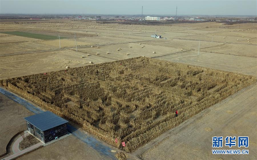 近日,一座占地10畝、用玉米秸稈搭建的迷宮亮相河北省昌黎縣劉臺(tái)莊鎮(zhèn)白棗林村收完莊稼的田間,吸引游客前來體驗(yàn)。