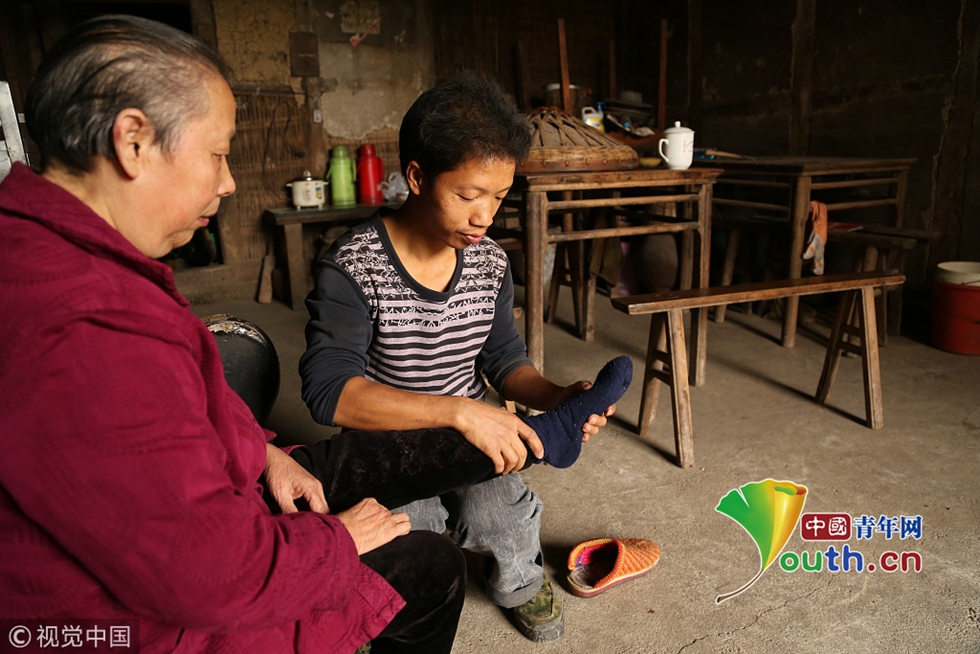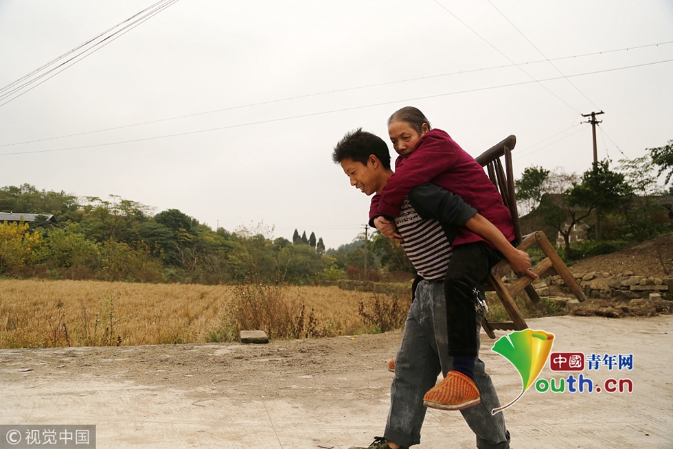 因為要用更多的時間照顧母親,能接受王顯強的企業(yè)并不多,好不容易進了廠,給他的工資也不高?!皦蛄耍灰莛B(yǎng)活我和媽媽,我不在乎其他的。”就這樣,王顯強背著母親輾轉(zhuǎn)重慶主城,打工了15年。