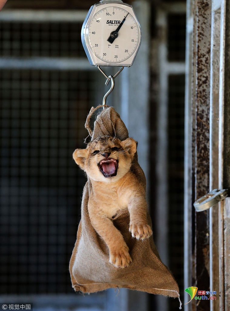 萌吐奶!動(dòng)物體檢現(xiàn)場(chǎng)爆笑可愛 獅子被提起來稱重