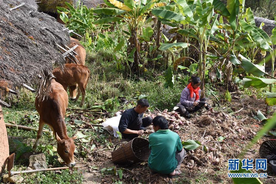 12月3日,在云南省瀾滄拉祜族自治縣南嶺鄉(xiāng)勐炳村龍?zhí)独险迕裨诎沤兜乩镒鲛r(nóng)活。 新華社記者張瑞琪攝