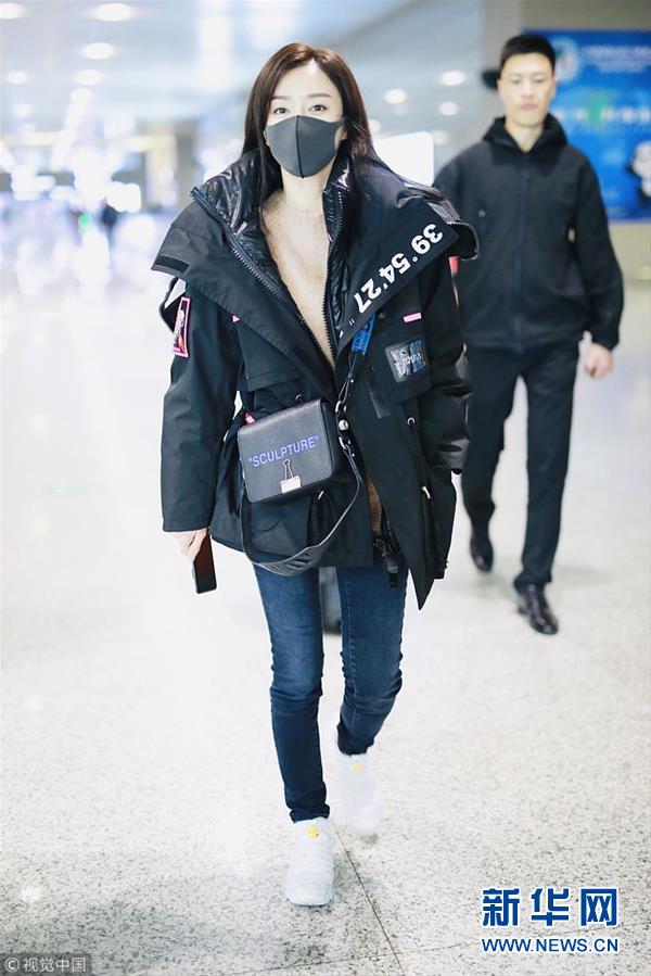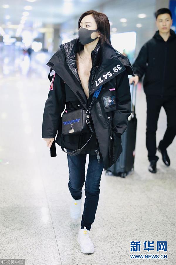 2018年12月3日,上海,秦嵐亮相機(jī)場(chǎng)。潮味棉服亮相機(jī)場(chǎng)變酷女孩,口罩遮面露甜笑心情靚。(圖片來(lái)源:視覺(jué)中國(guó))