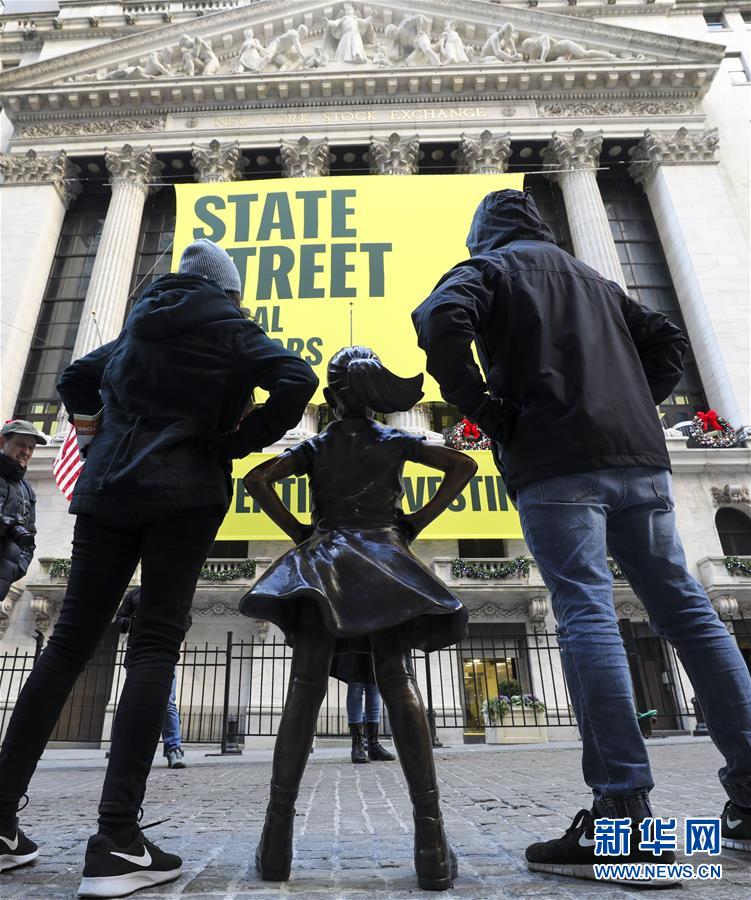 這是12月10日在美國(guó)紐約證券交易所前拍攝的“無畏女孩”銅像。 新華社記者 王迎 攝