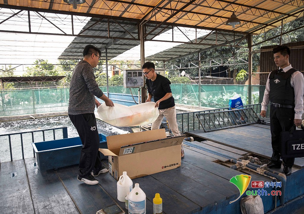 中國青年網2018年12月12日訊 由于這條錦鯉價格昂貴,錦鯉的原主人——“長彥觀賞魚漁場”淘寶店主李長彥請安保一路護送錦鯉。負責護送的天尊安保小哥透露,之前曾護送過明星、政要,也護送過貴重物品,但這是第一次護送一條魚。