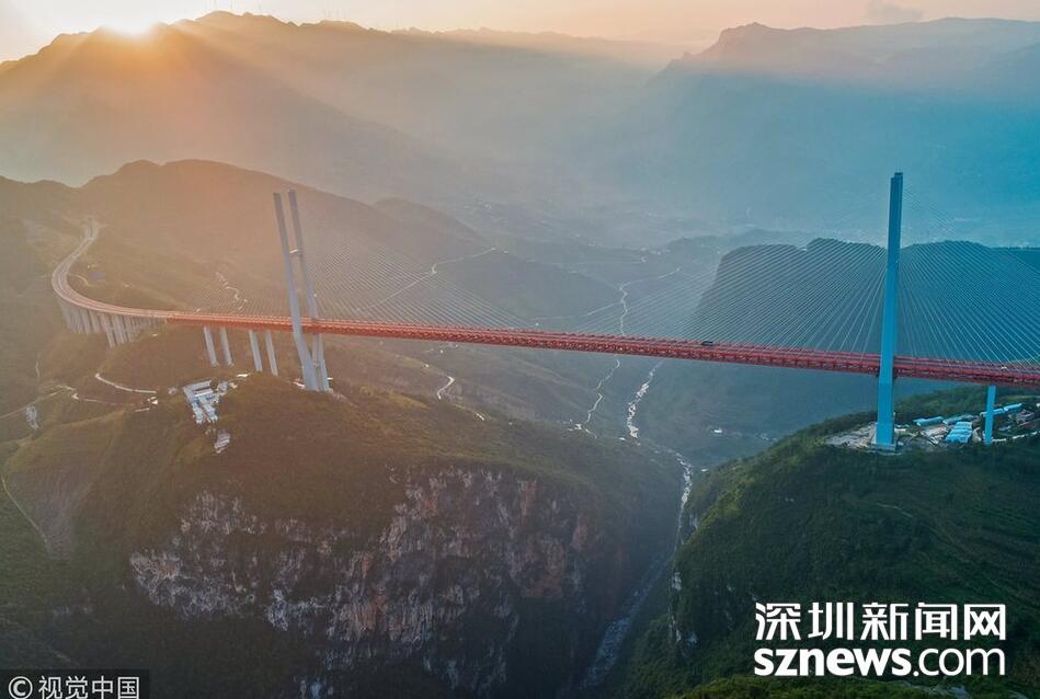 畢都高速公路北盤江大橋是杭瑞高速公路畢都段的控制性工程,位于貴州省和云南省交界處,由貴州省和云南省共建。該橋橋面至江面高差達(dá)565米,成為目前世界第一高橋。主橋?yàn)殇撹炝盒崩瓨颍骺?20米,目前位居同類型橋梁2016年12月29日正式通車。