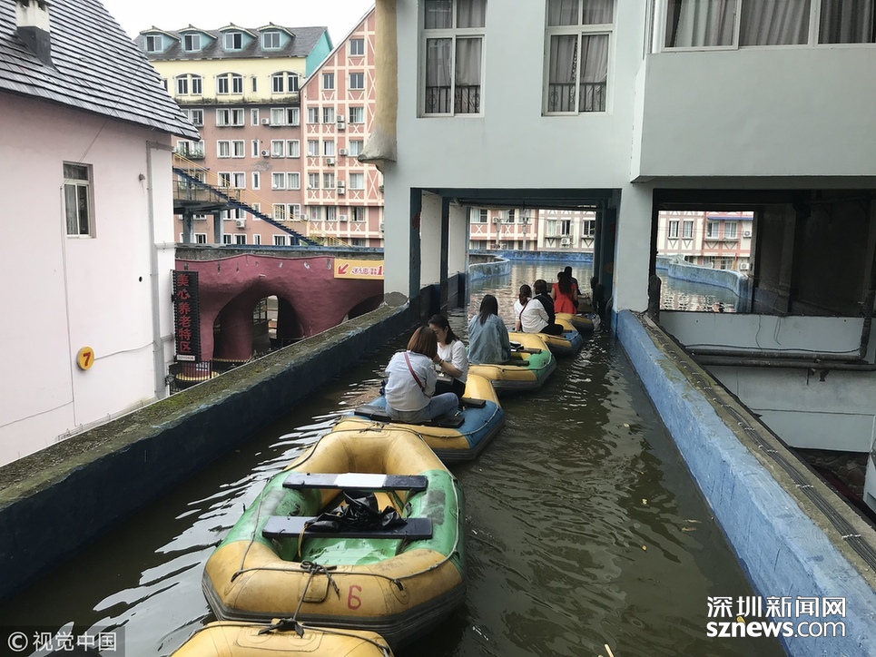 2018年6月20日,重慶涪陵,紅酒小鎮(zhèn)人工運(yùn)河全長近5公里,2009年開建,先期依梨香溪岸線而建,后期隨著景區(qū)的發(fā)展,運(yùn)河逐漸拓展為高架橋的“空中運(yùn)河”,穿樓而過的“室內(nèi)運(yùn)河”,穿水上樂園而過的“水中運(yùn)河”。為確保一個(gè)水平面,運(yùn)河見房穿洞,過路搭橋,游客乘坐觀光船或蕩舟其中成為一道獨(dú)特的風(fēng)景線。隨著8D魔幻重慶的不斷走紅,該景區(qū)的網(wǎng)紅運(yùn)河正受到游客的喜愛與“打卡”。