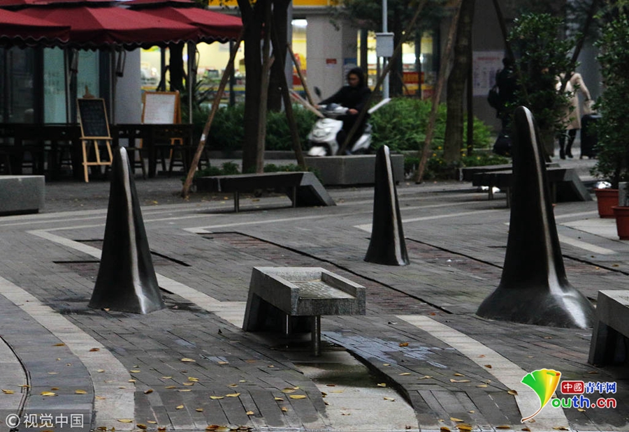 對(duì)于這種設(shè)計(jì),不少市民覺得比較精巧的,遠(yuǎn)遠(yuǎn)地望去,就好像在海面上露出魚鰭的一群鯊魚,不僅可以防止被車輛占道,而且還有點(diǎn)裝飾的效果。