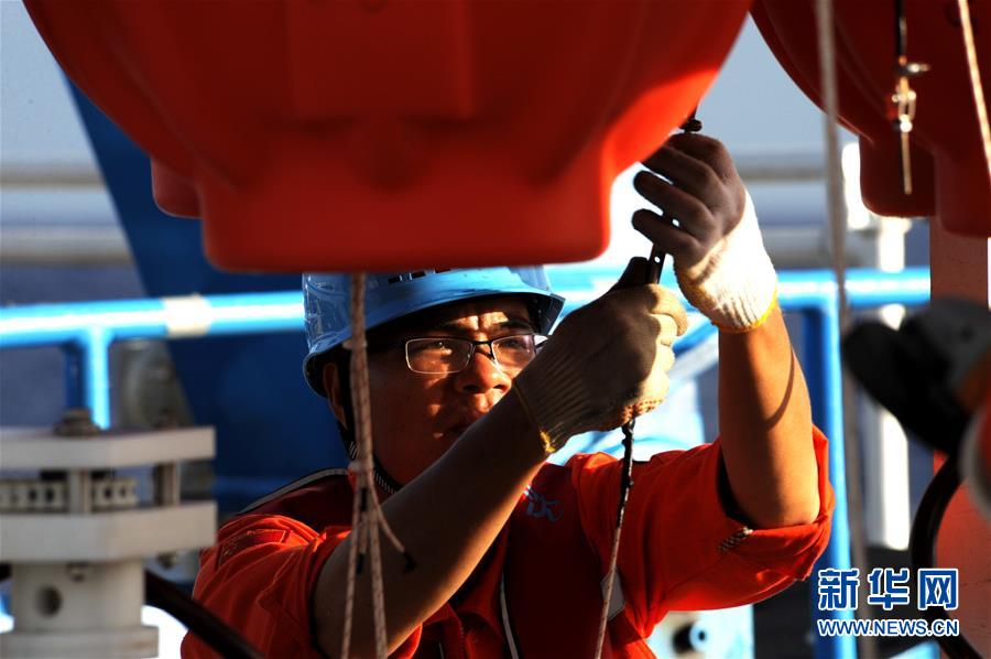 考察隊(duì)員在布放“彩虹魚”著陸器前進(jìn)行檢查工作(12月10日攝)。 由上海海洋大學(xué)和西湖大學(xué)聯(lián)合組成的“彩虹魚”科考團(tuán)隊(duì),12月11日在全球最深的海溝——馬里亞納海溝成功完成兩臺(tái)“彩虹魚”第二代著陸器的萬米級(jí)海試,深度分別為10918米和10899米。 新華社記者 張建松 攝