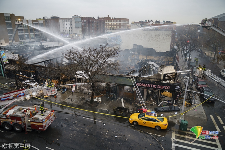 美國紐約發(fā)生大火吞噬六家商鋪 消防員撲滅火災(zāi)余燼