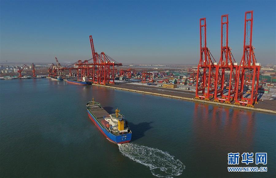 12月13日,一艘輪船在向唐山港京唐港區(qū)集裝箱碼頭靠泊(無人機拍攝)。 記者從河北省交通運輸廳獲悉,2018年1至11月,河北省港口貨物吞吐量完成10.5億噸,為年度計劃的104%,同比增長5.1%,位居全國沿海省份第四位。 新華社記者楊世堯攝
