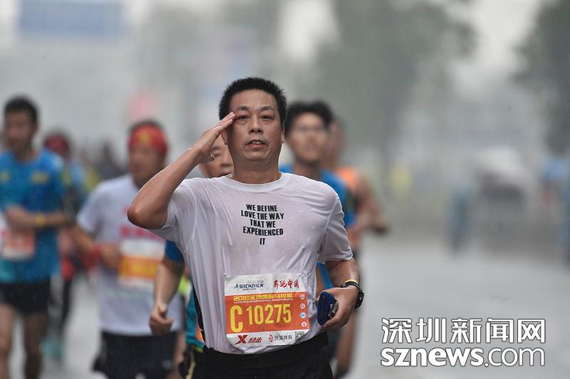 2018年12月16日,深圳國際馬拉松位于后海的折返點(diǎn),一名選手正在向終點(diǎn)沖刺。