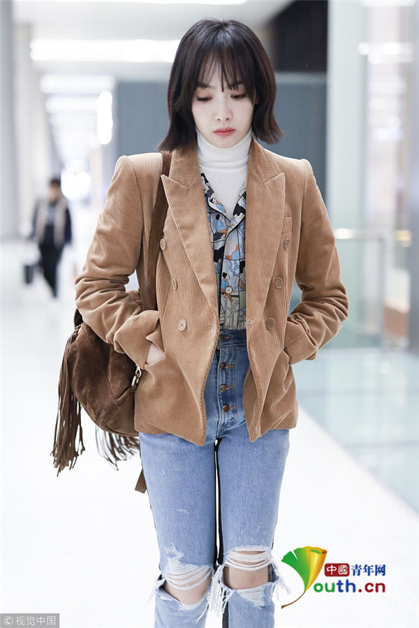 2018年12月16日,宋茜從上海機場飛往北京機場。她身穿短款薄外套,搭配破洞牛仔褲,要風度不要溫度,一路低頭前行悶悶不樂似遇愁心事,到了北京之后她又裹起了厚圍巾,但依舊悶悶不樂。