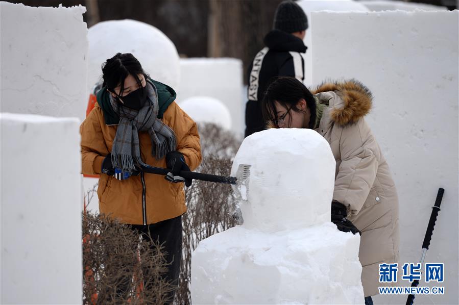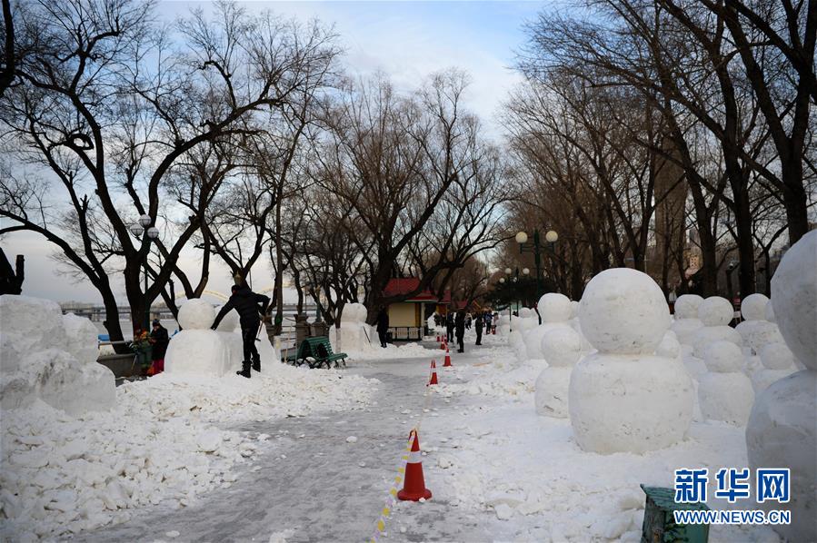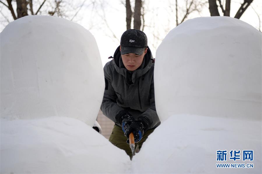 國(guó)內(nèi)最大的雪雕盛會(huì)太陽島雪博會(huì)正在緊鑼密鼓建設(shè)中,雪雕師正在精雕細(xì)刻打磨中。