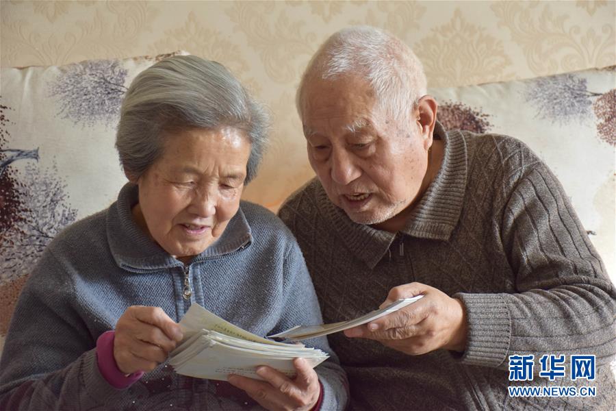 劉銘庭與妻子在烏魯木齊家中翻看過去的照片(12月10日攝)。