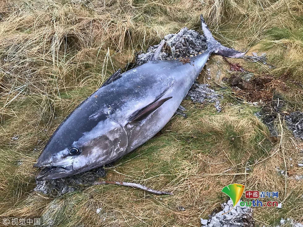 當?shù)貢r間2018年12月16日,英國蘇格蘭海灘,一條兩米長的藍鰭金槍魚在海灘上被發(fā)現(xiàn),據(jù)悉是由于狂風暴雨導致誤入海灘并擱淺死亡。