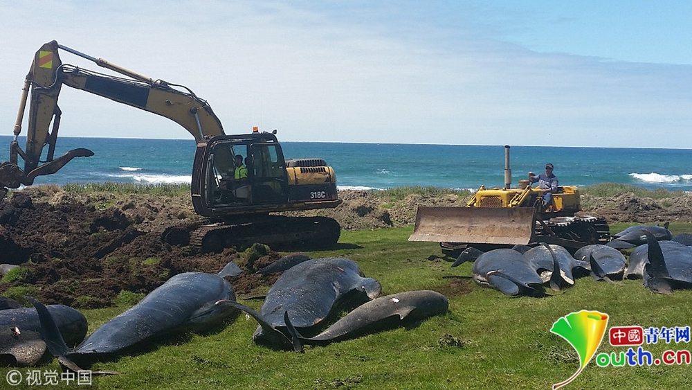 當?shù)貢r間11月30日,新西蘭查塔姆島,多頭巨頭鯨在當?shù)睾R淺死亡,尸體被沖上岸。