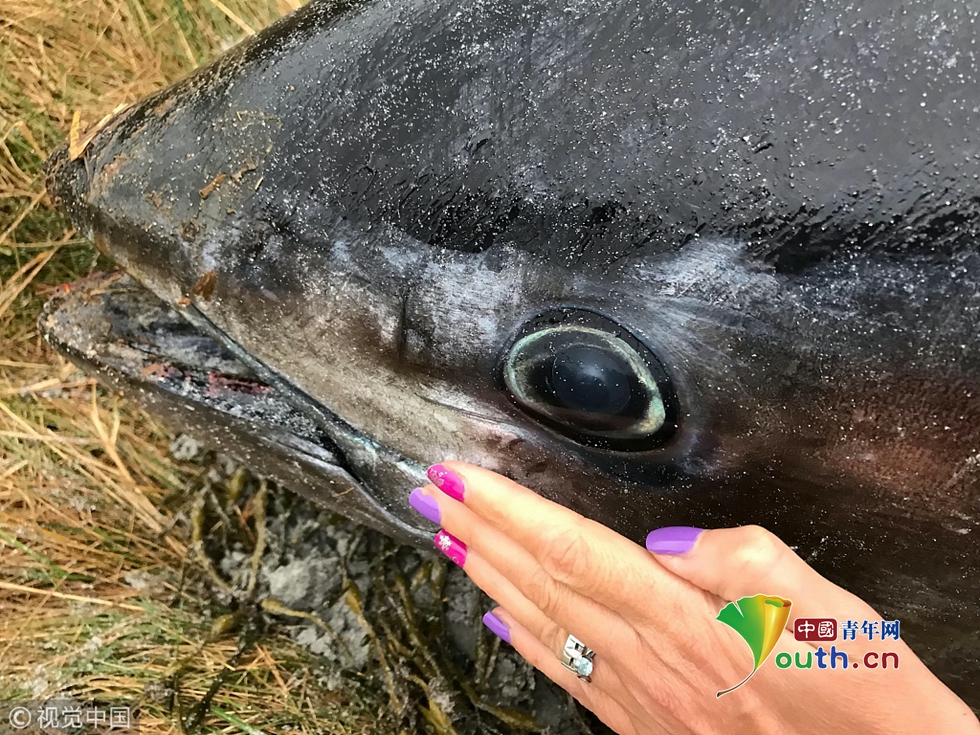 英國沙灘現(xiàn)2米長巨型藍鰭金槍魚