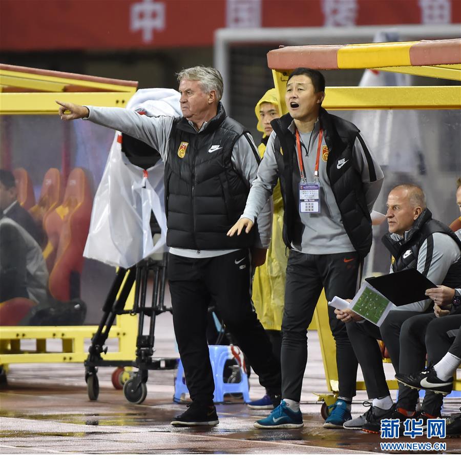 圖為2018年11月15日,中國(guó)U21男子足球隊(duì)主教練希丁克(左一)和中方教練組長(zhǎng)孫繼海(左二)在與泰國(guó)U21男子足球隊(duì)的2018年中國(guó)足協(xié)中國(guó)之隊(duì)國(guó)際青年足球錦標(biāo)賽中的資料照片。 新華社記者唐奕攝