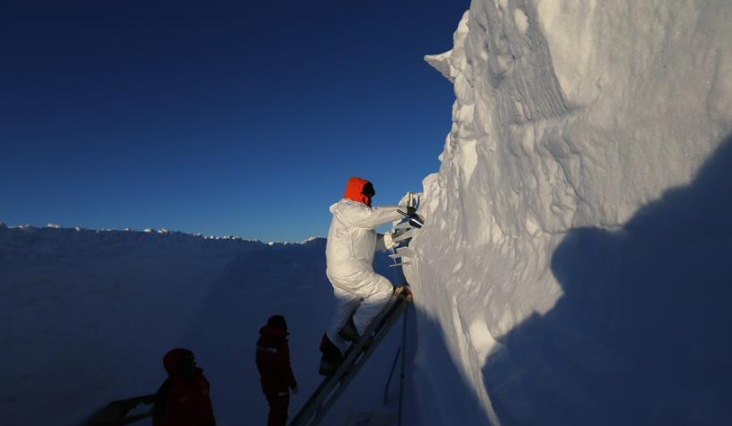 2018年12月18日,四川宜賓。武警宜賓支隊政治工作處宣傳保衛(wèi)股股長朵祝偉為周家鎮(zhèn)新塘安置點的“帳篷學校”的學生上抗震常識課。圖片作者:謝江、劉崇達/視覺中國