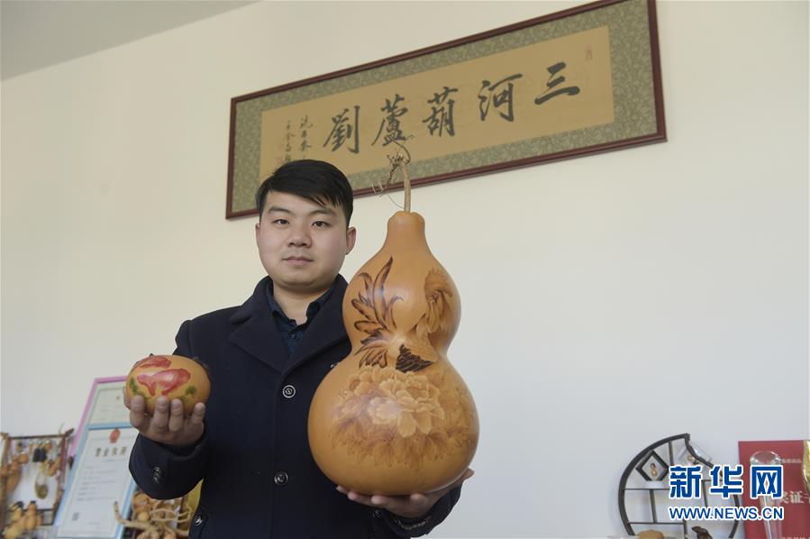 2014年,劉征從北京工商大學(xué)畢業(yè)后,曾從事過一段時(shí)間旅游產(chǎn)業(yè)方面的工作。2015年他回鄉(xiāng)創(chuàng)業(yè),致力于葫蘆烙畫創(chuàng)作和葫蘆衍生品的開發(fā)。如今,劉征不僅注冊了自己的葫蘆衍生品商標(biāo),還和同學(xué)組建團(tuán)隊(duì)共同創(chuàng)業(yè),業(yè)務(wù)內(nèi)容涵蓋從葫蘆種植、加工到銷售的全流程,著力打造個性化訂制等特色產(chǎn)品。目前,劉征和他的團(tuán)隊(duì)已銷售葫蘆創(chuàng)意產(chǎn)品超過1萬件,客戶超過1000人,部分創(chuàng)意產(chǎn)品還遠(yuǎn)銷到海外市場。
