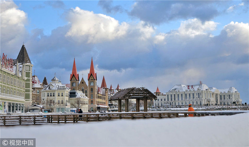 2018年12月7日,山東煙臺,雪后的海濱景色。當(dāng)日煙臺迎來今冬首場降雪,海濱建筑在大雪的裝點(diǎn)下,形成海濱城市獨(dú)有的美麗雪景。地處膠東半島的煙臺,冬季降雪量遠(yuǎn)高于地理位置相近的其他地區(qū),形成了獨(dú)特的海濱雪城,是中國著名的“雪窩”。唐克/視覺中國
