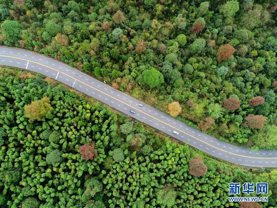 2018年11月21日,車輛行駛在國(guó)家第一條四車道盤山公路泰井高速上。 大地之色,俯仰之間;壯美山河,是我的祖國(guó)。2018年,新華社記者操縱無(wú)人機(jī)“飛閱”華夏大地,在最美的時(shí)節(jié),定格下她的色彩斑斕。 新華社記者 胡晨歡 攝