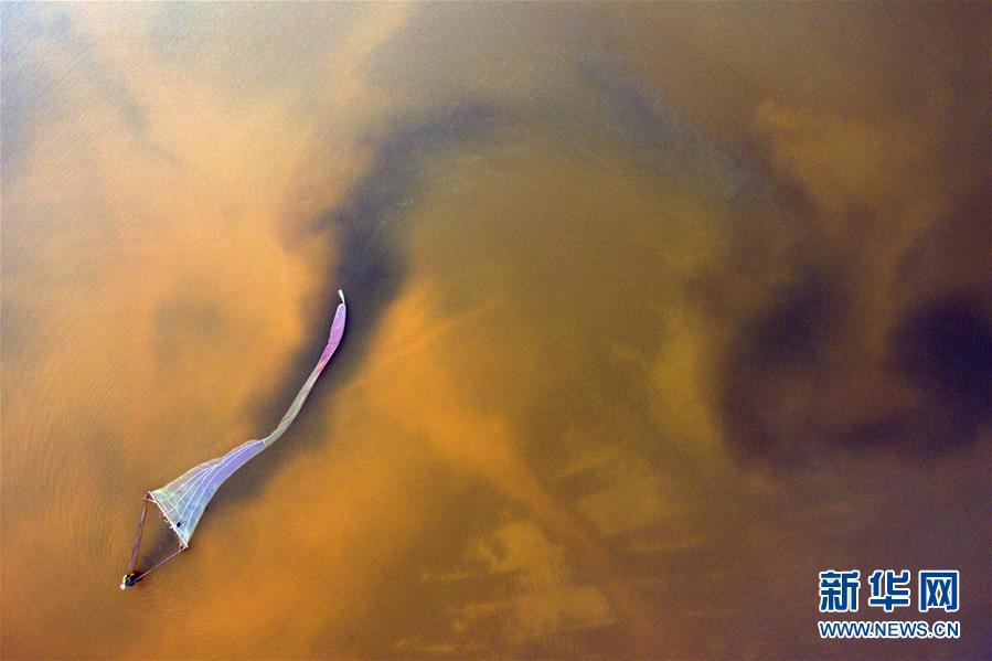 2018年7月6日,捕撈人員在山西運(yùn)城鹽湖內(nèi)捕撈鹽水蟲。 大地之色,俯仰之間;壯美山河,是我的祖國。2018年,新華社記者操縱無人機(jī)“飛閱”華夏大地,在最美的時(shí)節(jié),定格下她的色彩斑斕。 新華社記者 曹陽 攝