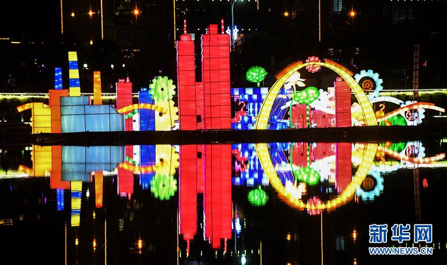 荔浦河中的花燈(12月17日攝)。  新華社記者張愛林攝