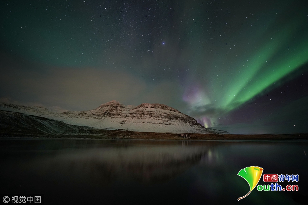 近日,冰島西海岸高463米的Kirkjufell山上空出現(xiàn)極光。