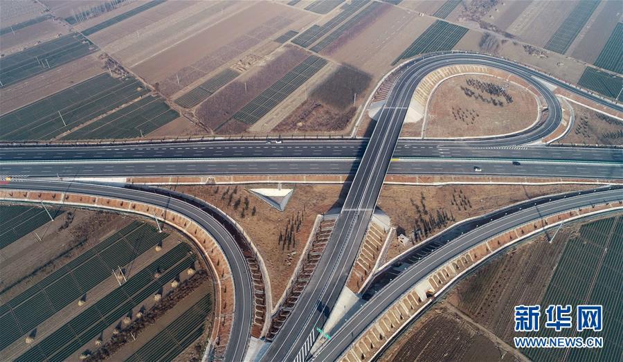 12月16日無人機(jī)拍攝的京秦高速公路二期工程河北玉田西進(jìn)出口處的立交橋。新華社記者楊世堯攝