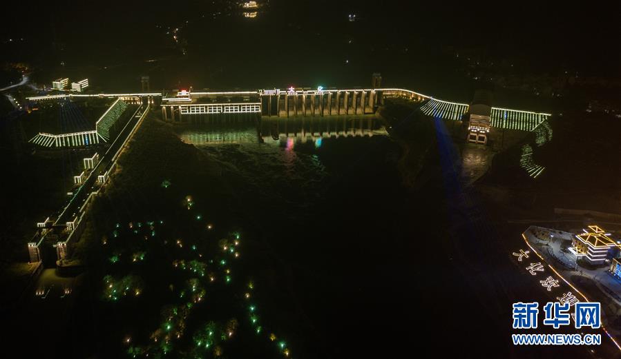 這是位于廣西大化縣境內的大化水電站夜景(10月21日無人機拍攝)。廣西紅水河是我國十二大水電基地之一,目前建有天生橋一級、天生橋二級、平班、龍灘、巖灘、大化、百龍灘、樂灘、橋鞏、大藤峽10個大型梯級電站及下游西江上的長洲水利樞紐。這些水電站既是我國“西電東送”的主力軍之一,又對珠三角地區(qū)遠離洪災侵襲有著重要的調節(jié)功能。近期,新華社記者用無人機從空中俯瞰這些水電基地群,呈現(xiàn)它們的別樣之美。新華社記者 張愛林 攝