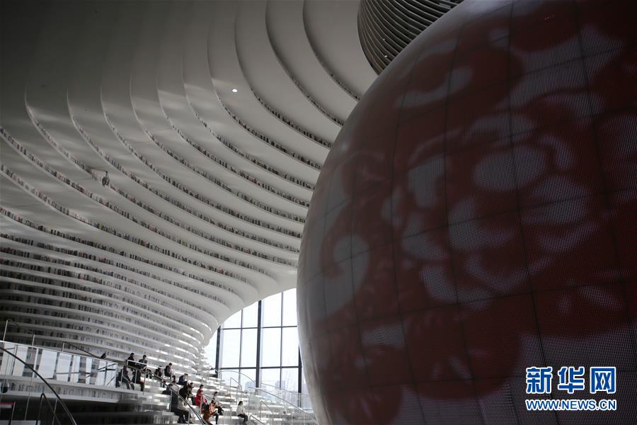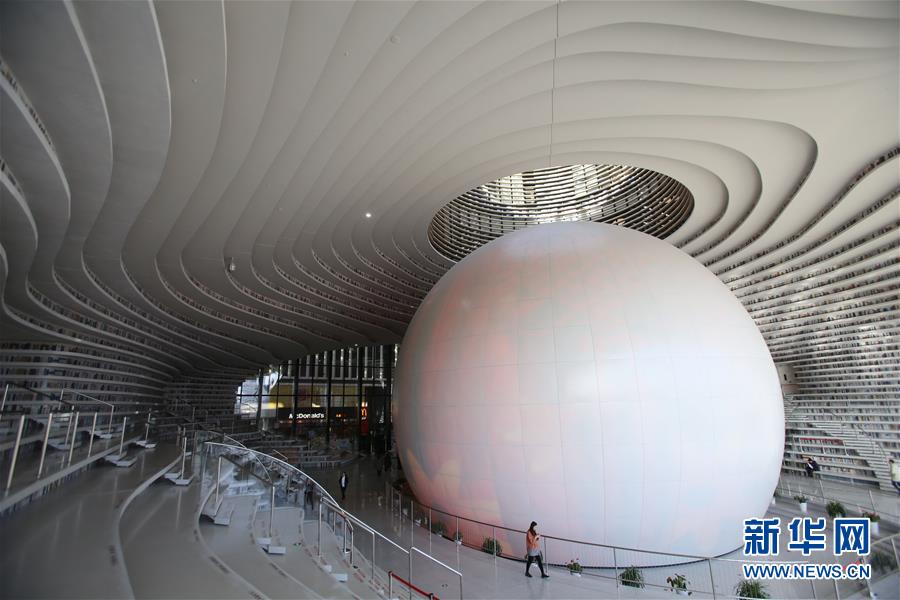 這是12月27日拍攝的天津濱海新區(qū)圖書館中庭。 濱海新區(qū)圖書館位于天津濱海文化中心,2017年10月1日正式開館,設計立意為“濱海之眼”和“書山有路勤為徑”。圖書館現(xiàn)有藏書60多萬冊,一年多來接待讀者約280萬人次,已成為濱海新區(qū)的文化“新地標”。 新華社記者李然攝