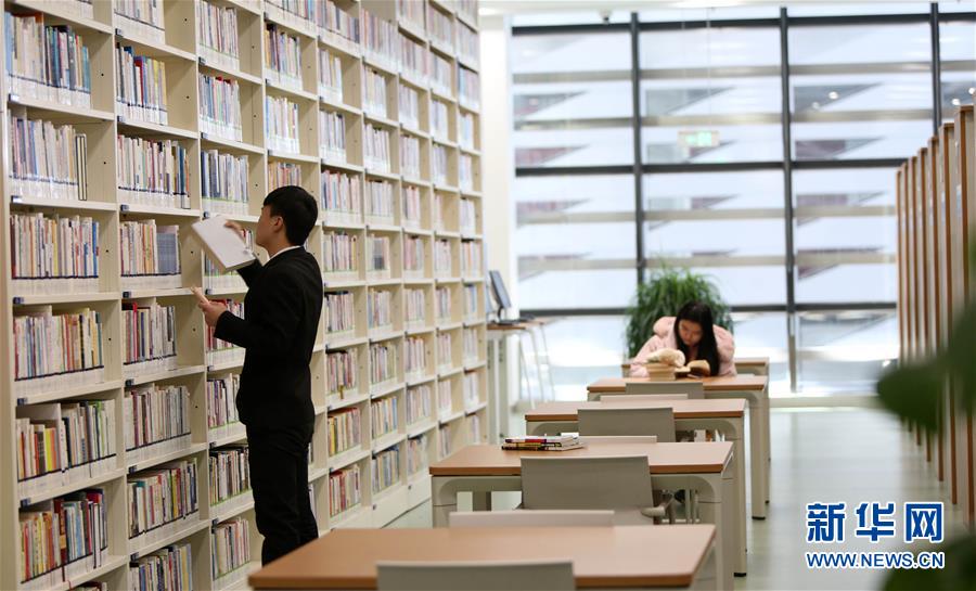 12月27日,在天津濱海新區(qū)圖書館,工作人員(左)在閱覽室中擺放圖書。 濱海新區(qū)圖書館位于天津濱海文化中心,2017年10月1日正式開館,設計立意為“濱海之眼”和“書山有路勤為徑”。圖書館現(xiàn)有藏書60多萬冊,一年多來接待讀者約280萬人次,已成為濱海新區(qū)的文化“新地標”。 新華社記者伍婧丹攝