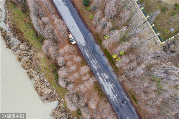 2018年12月27日,江蘇淮安,航拍京杭大運(yùn)河淮安段冬日景色。吳揚(yáng)/視覺(jué)中國(guó)