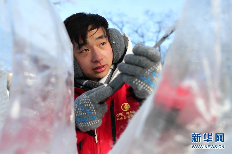 12月27日,選手在比賽中完善冰雕作品。 當(dāng)日,第十六屆黑龍江省大學(xué)生冰雕藝術(shù)設(shè)計(jì)創(chuàng)作大賽在哈爾濱兆麟公園落下帷幕,全省高校共有99支隊(duì)伍參賽。 新華社記者曹霽陽(yáng)攝
