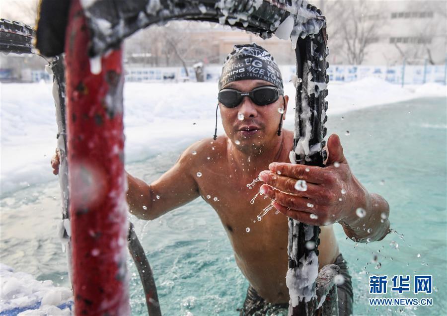 當(dāng)日,新疆烏魯木齊戶外氣溫接近零下20攝氏度,許多冬泳愛好者不懼嚴寒,來到烏魯木齊紅山游泳中心戶外泳池進行冬泳運動,鍛煉身體,磨練意志。