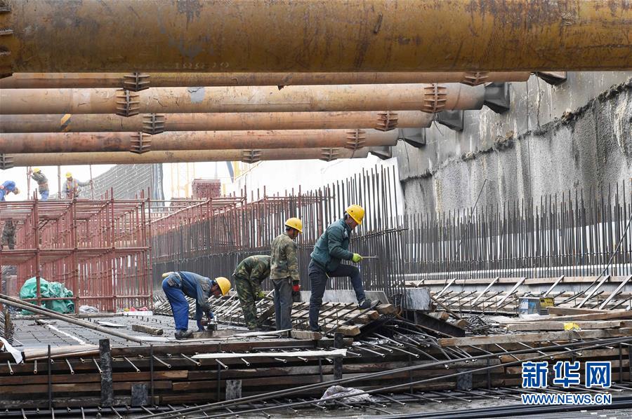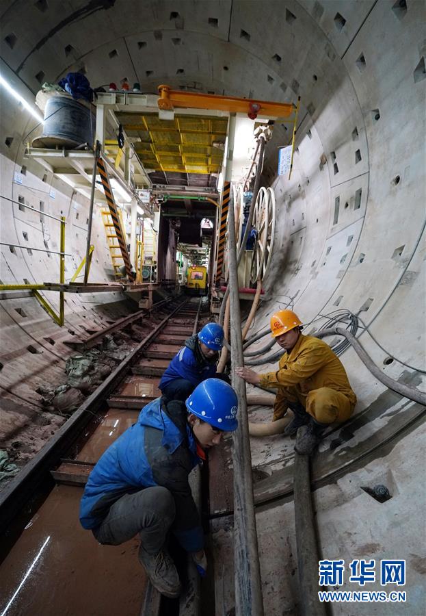 12月30日,南昌地鐵四號(hào)線西禮區(qū)間項(xiàng)目工地上,中鐵上海工程局集團(tuán)有限公司的職工在進(jìn)行施工。新華社記者宋振平攝