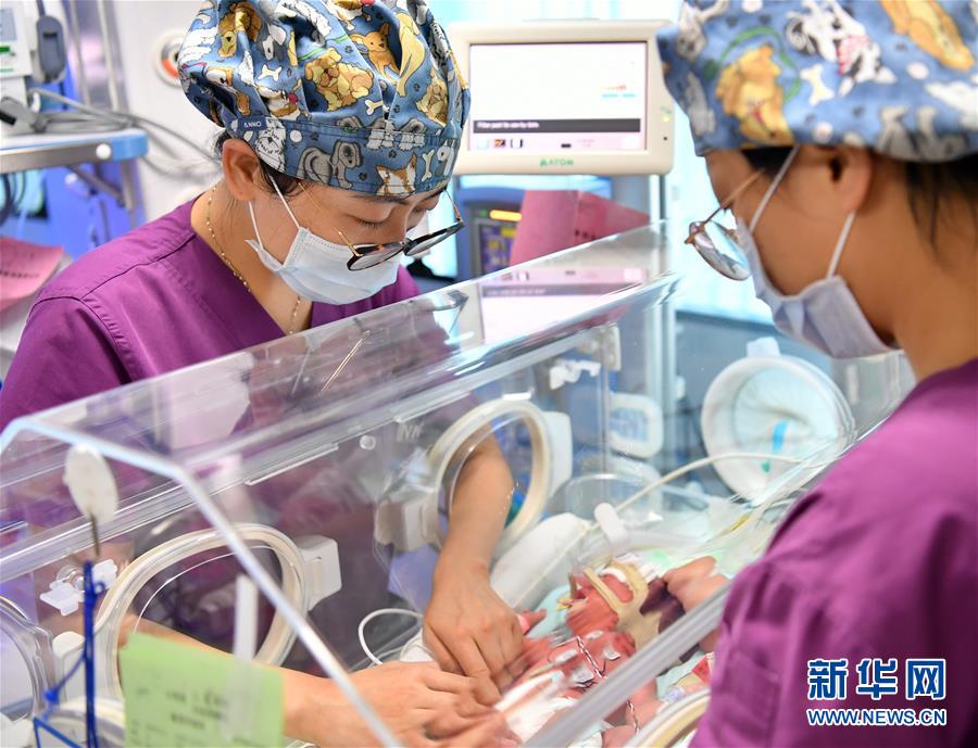 12月30日,山西省兒童醫(yī)院新生兒重癥監(jiān)護(hù)室的護(hù)士在為新生兒做護(hù)理。新華社記者曹陽(yáng)攝