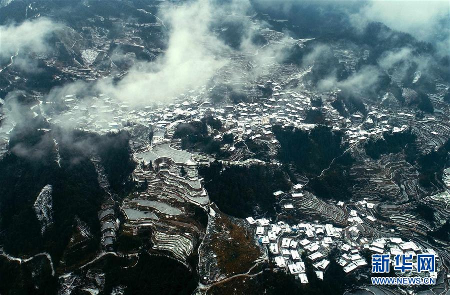 這是廣西融水苗族自治縣山區(qū)景色(2019年1月1日無人機(jī)拍攝)。近日,受冷空氣影響,廣西融水苗族自治縣持續(xù)低溫并伴有降水。新華社記者 黃孝邦 攝