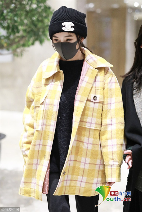 2018年1月6日,上海,楊冪現(xiàn)身某酒店。她戴著帽子口罩,身穿黑色套裝,而外面搭配的奶黃格子外套卻瞬間減齡,明亮又惹眼,無懼寒冬露著纖細腳踝,依舊是那個很會穿搭的大冪冪。