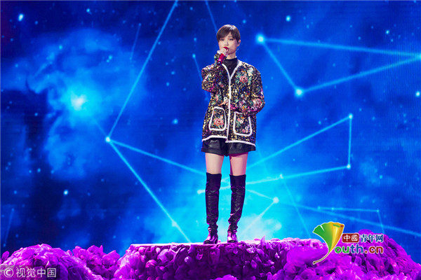2019年1月8日晚,北京,李宇春亮相第17屆電影頻道電影百合獎(jiǎng)?lì)C獎(jiǎng)典禮,并演唱了一首《你是如此難以忘記》。當(dāng)晚的她一身閃花衣搭配黑色短褲長(zhǎng)靴,一雙長(zhǎng)腿吸睛十足,盡顯女人柔美和帥氣的雙重魅力,她手放胸前鞠躬向觀眾致意,謙遜有禮。