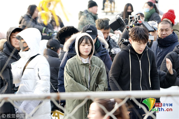 2019年1月9日,北京,鄧倫、馬思純現(xiàn)身后海滑冰場,騎冰車拍攝新劇《加油你是最棒的》。寒冷的北京,二人身著單薄的劇中服裝現(xiàn)身拍攝片場,不顧嚴(yán)寒超敬業(yè)。
