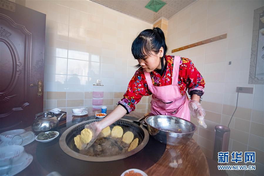 1月10日,在舒蘭市二合屯,農(nóng)家樂老板楊會為游客準備東北特色菜肴。 新華社記者張楠攝